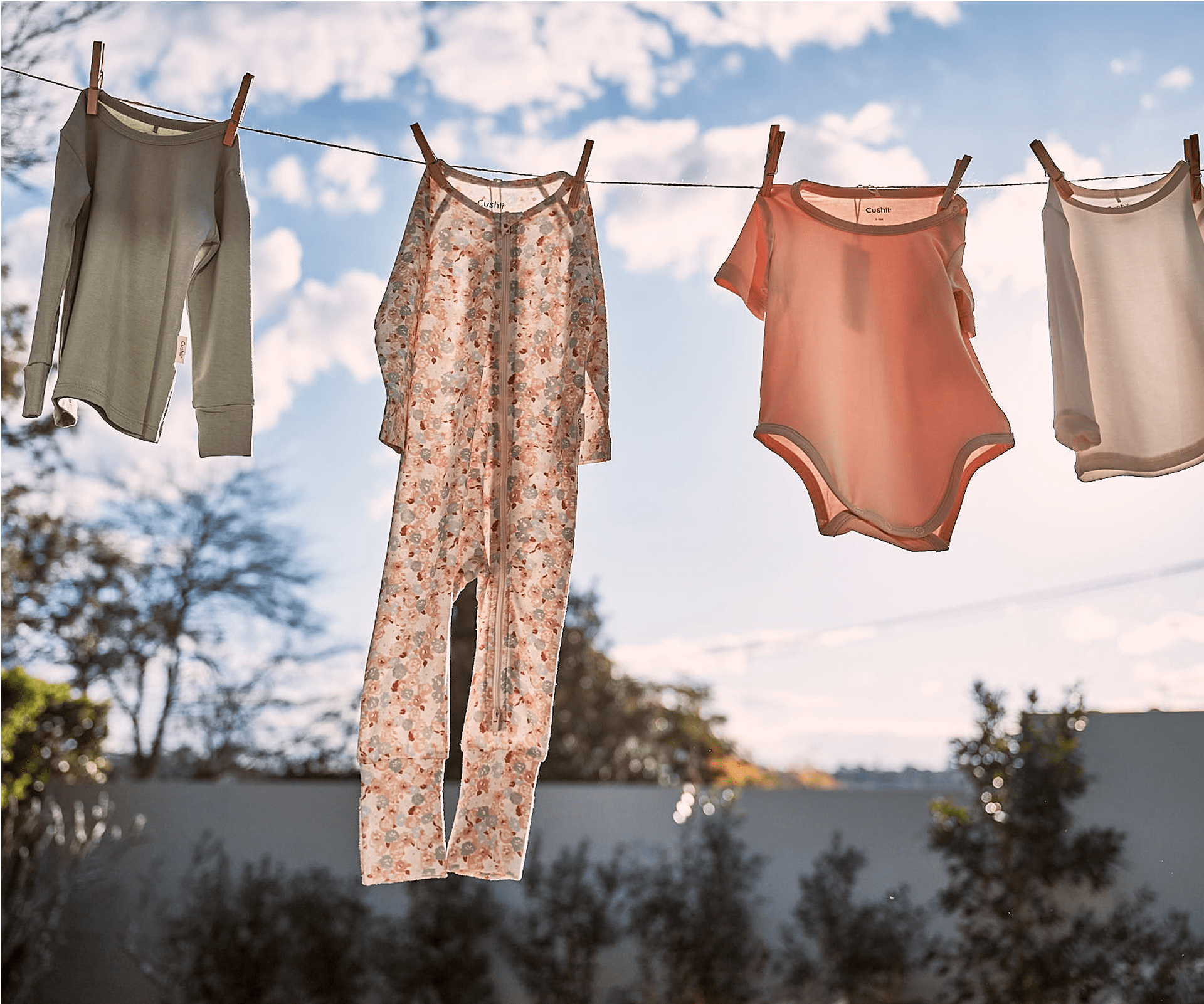 Cushii Softluxe™ is our signature fabric—buttery‑soft, breathable and temperature‑regulating, crafted primarily from certified TENCEL™ Modal. It’s engineered to feel cloud‑soft on delicate skin while actively wicking moisture to help keep bub comfy day and night.