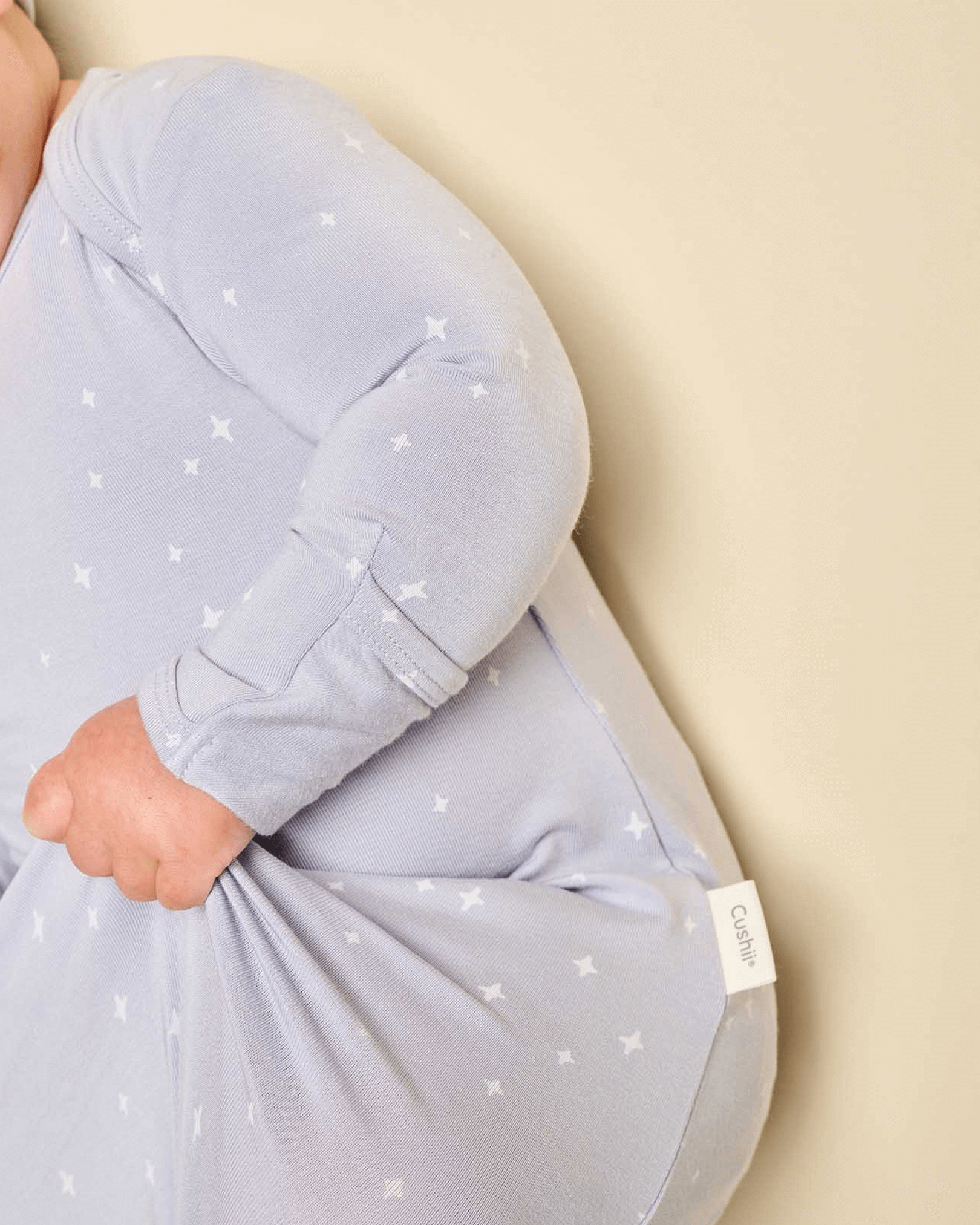 Cushii Softluxe™ is our signature fabric - buttery‑soft, breathable and temperature‑regulating, crafted primarily from certified TENCEL™ Modal. It’s engineered to feel cloud‑soft on delicate skin while actively wicking moisture to help keep bub comfy day and night.